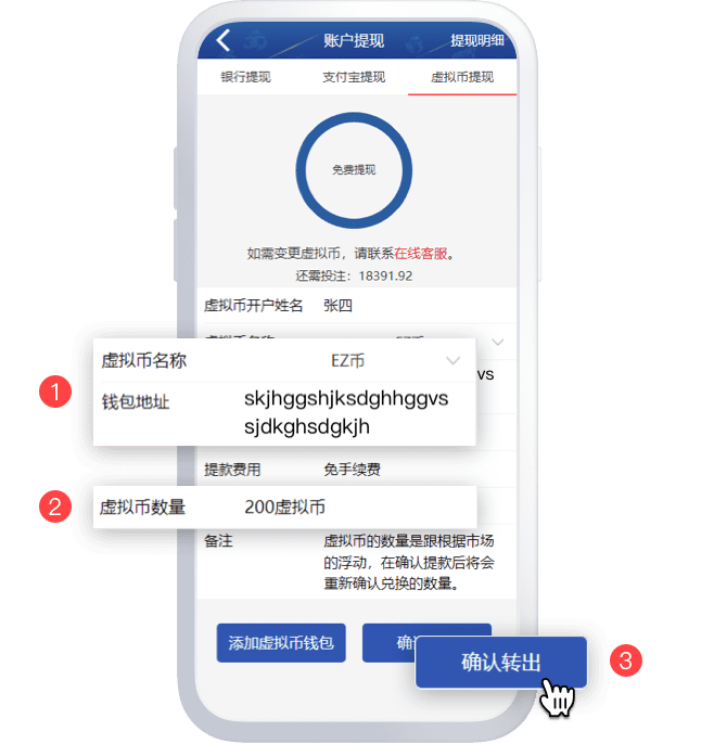 提现时选择使用您绑定的【EZ币】收款